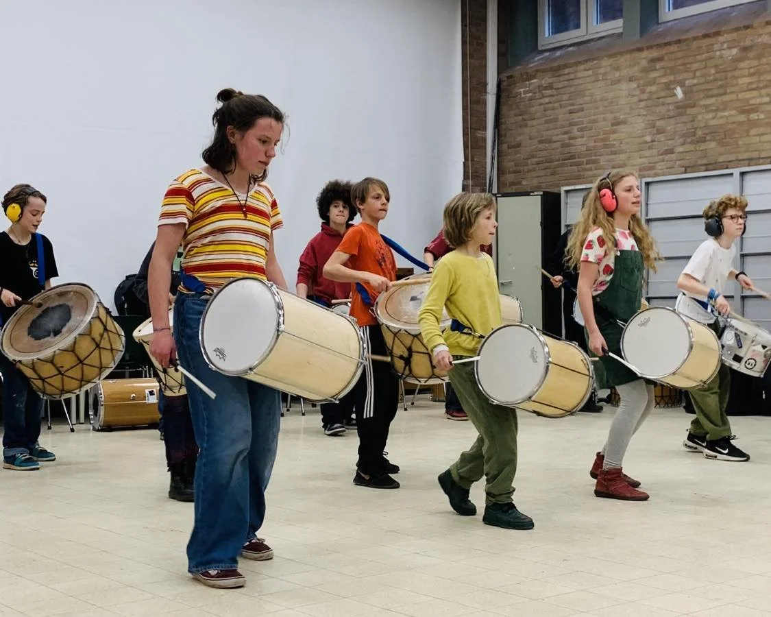 Tijdens onze percussiestage kan je de instrumenten en grooves van DeBATTERIJ leren kennen of je eigen maken. Jong of oud, veel, weinig of helemaal geen muzikale of ritmische voorkennis, iedereen is welkom. Plezier in het samenspelen staat zoals steeds voorop! Het is mogelijk om ook meerdere keren aan zo’n stage deel te nemen.